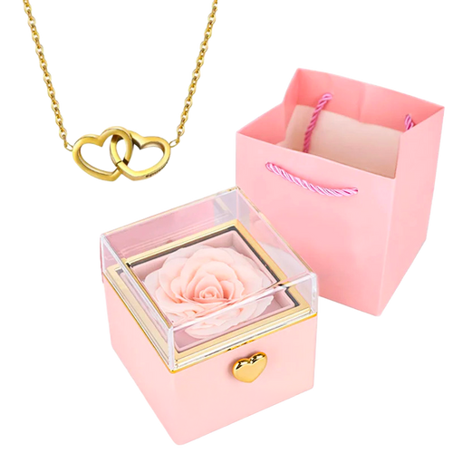 💖 2-en-1 élégant – Collier cœur personnalisé accompagné d’une boîte à rose rotative pour une surprise inoubliable.